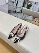 Bepointy Slingback Pumps Bow In Black Cowhide And Patent Leather Pale Pink Sheepskin Linning 304252