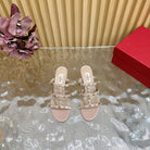 Rockstud Leather Caged Mule Sandals 60mm Pale Pink Sheepskin 307861