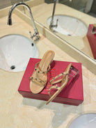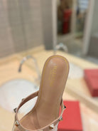ROCKSTUD MULE SANDALS IN CAMEL BROWN CALFSKIN AND TRANSPARENT PVC FILM
