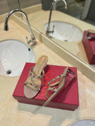 ROCKSTUD MULE SANDALS IN LIGHT PINK CALFSKIN AND TRANSPARENT PVC FILM