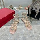 ROCKSTUD SANDAL WITH STRAPS IN LIGHT PINK CALFSKIN