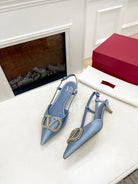Valentino 25 Vlogo Signature Slingback Pumps Blue Pastel Silk 239503