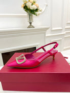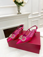Valentino 25 Vlogo Signature Slingback Pumps Hot Pink Pastel Silk 239502