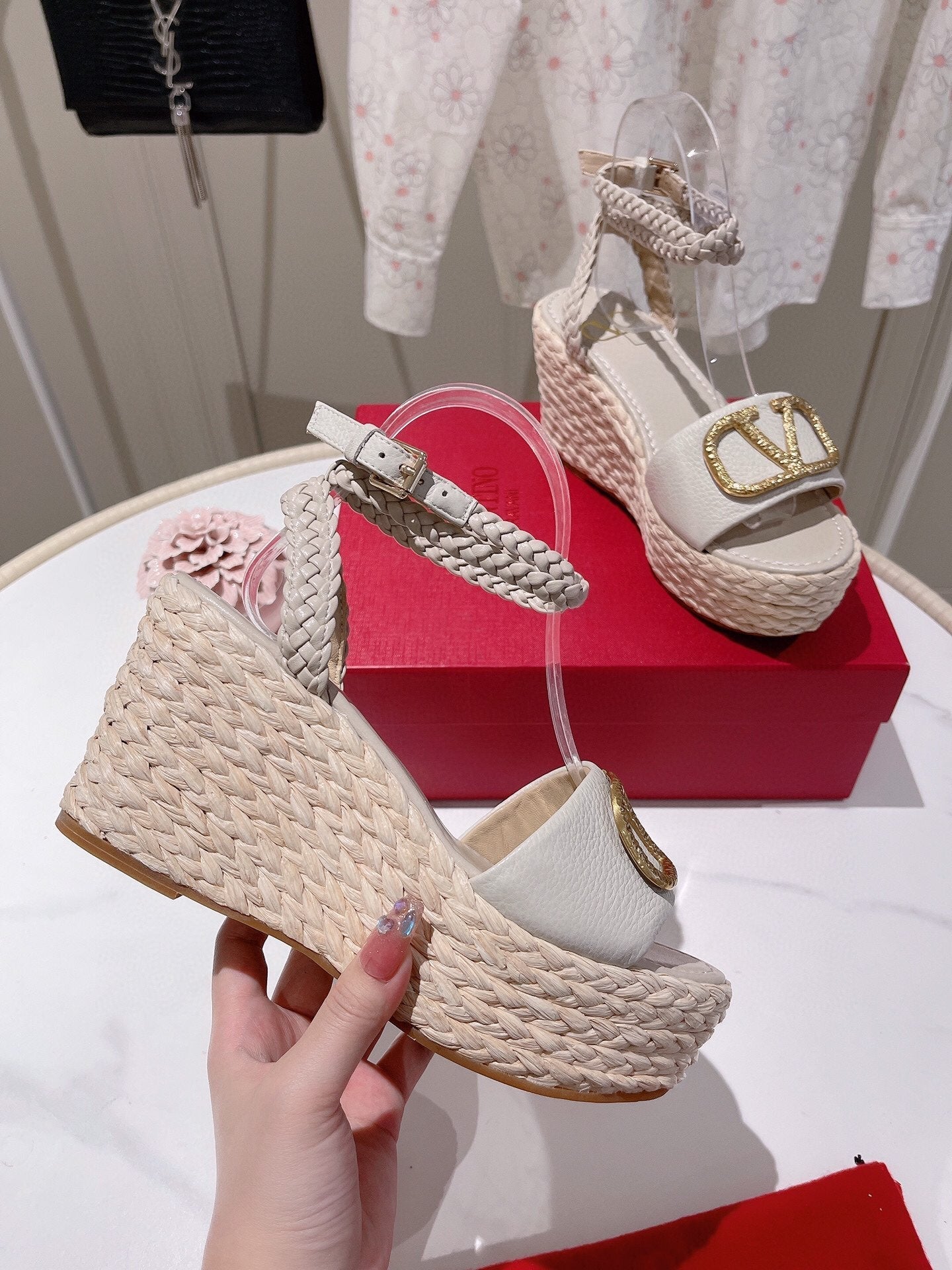 - Nylon rope wrapped wedge heel-10cm waterproof platform-3cm
