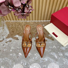 Vlogo Signature with Crystals Cut-Out Slingback Pump 70 Brown Calfskin