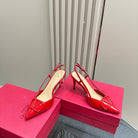 VLOGO SIGNATURUE CHERRY RED PATENT LEATHER SLINGBACK PUMP 80MM