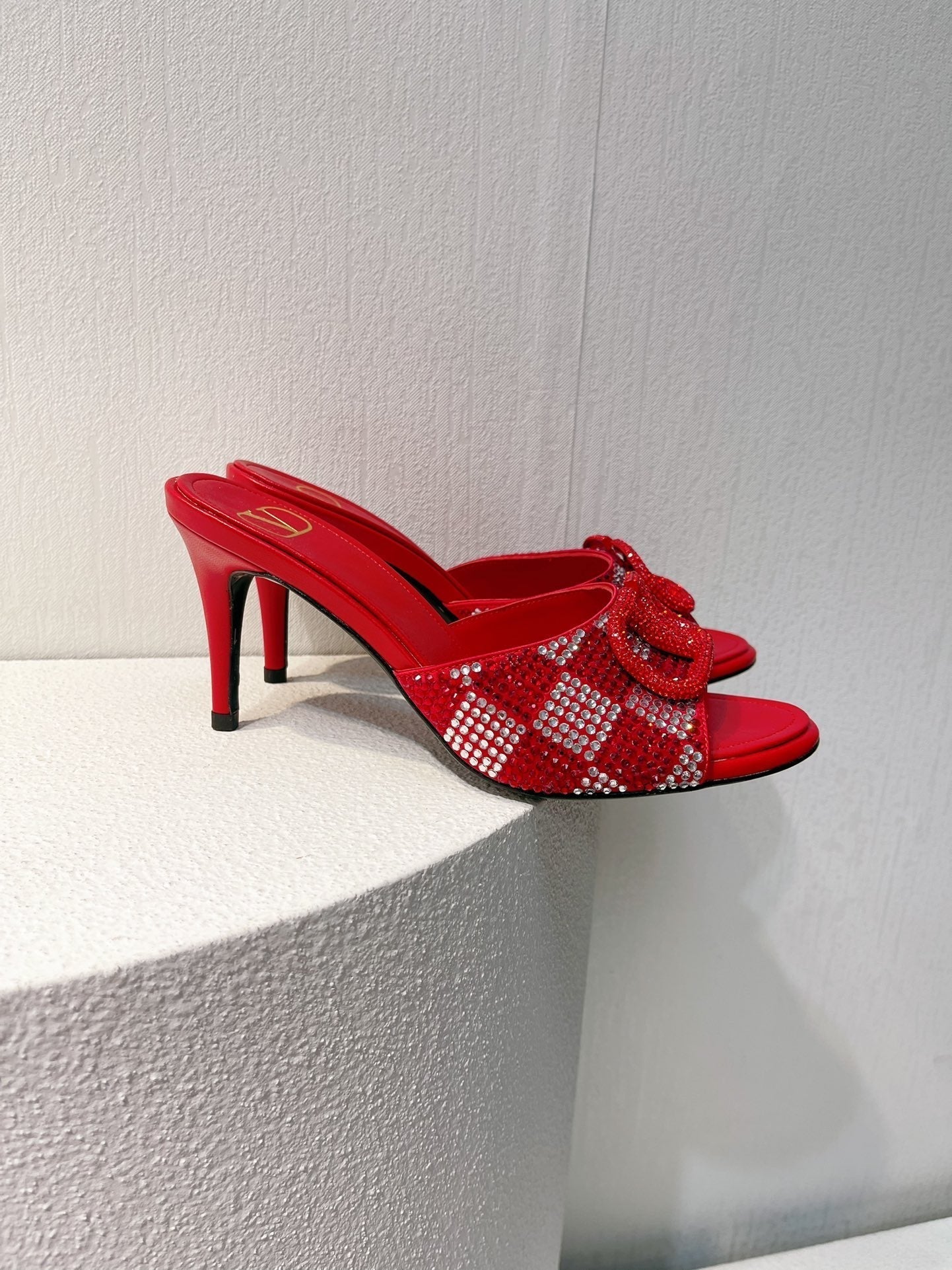 VT High Heeled Sandals Cherry Red Sheepskin 292838