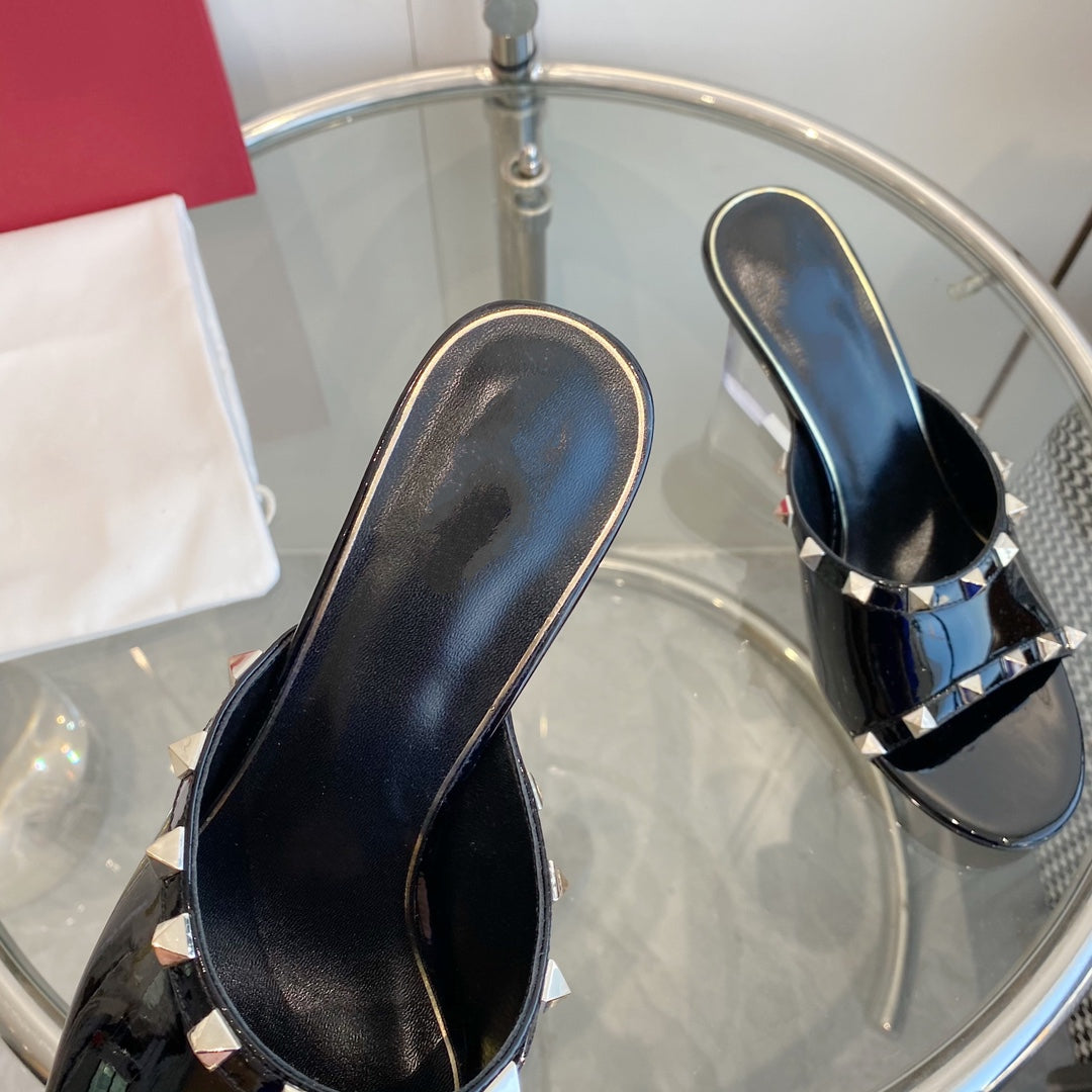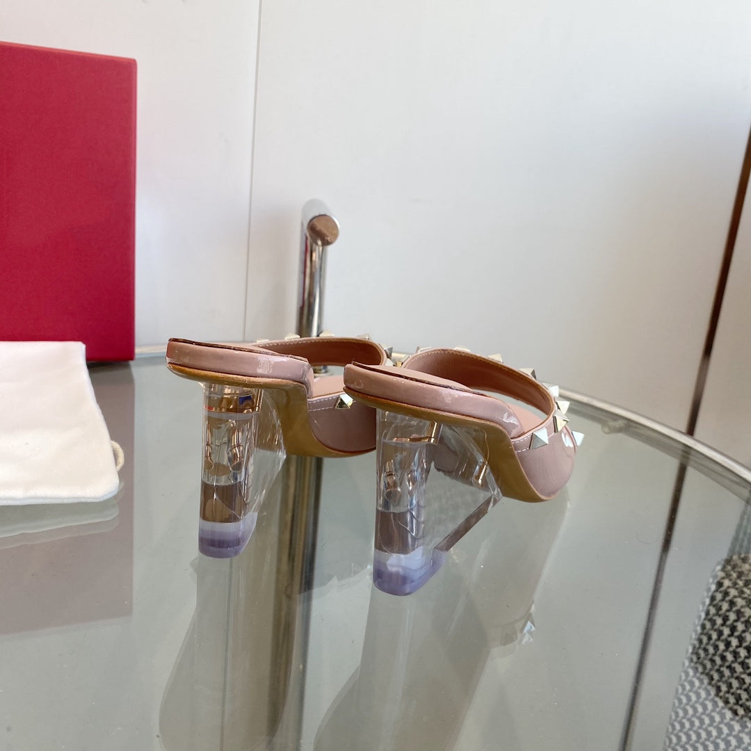 80mm Rockstud Patent Rose Cannelle Leather Mules Transparent