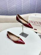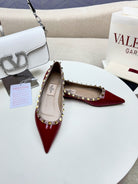 ROCKSTUD FLAT PUMP IN BERRY RED CALFSKIN