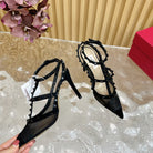 Rockstud Metallic Ankle Strap Pump 95mm Black Lambskin And Lace Fabric 102091