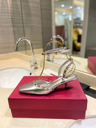 ROCKSTUD SLINGBACK IN SILVER CALFSKIN 50MM