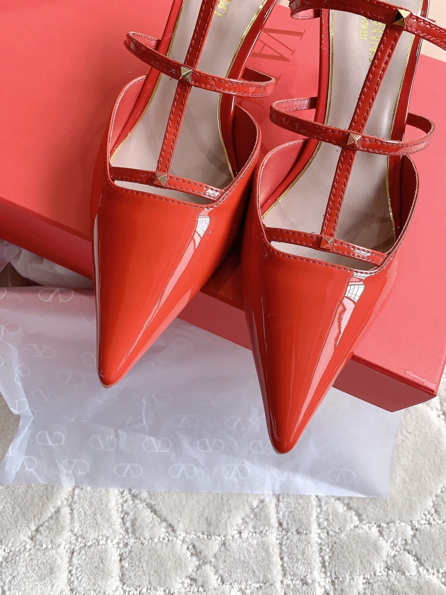 Rockstud Wispy Calfskin Mule 65mm Shiny Red