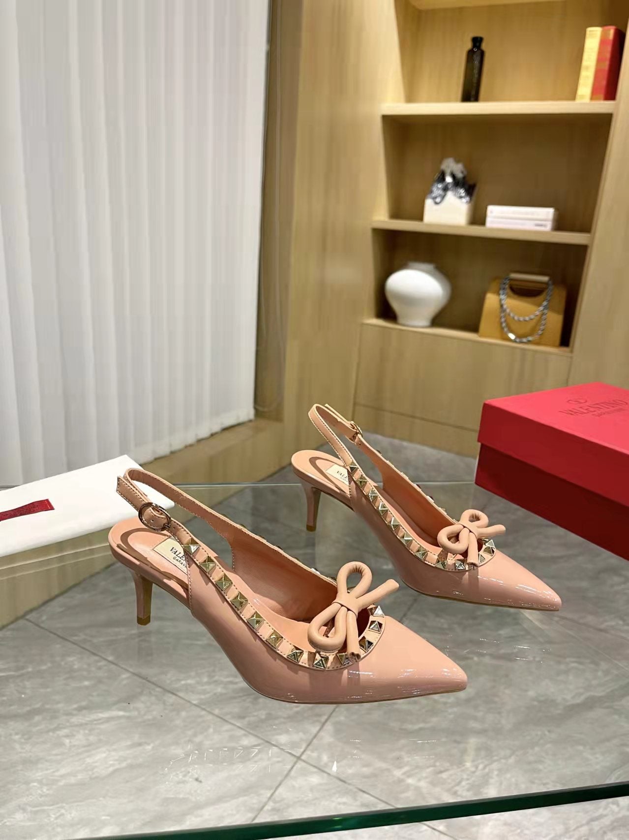 Valentino Rockstud Bow Slingback Pumps 65mm Patent Leather