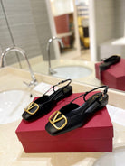 VLOGO BLACK LEATHER SLINGBACK FLATS