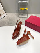 vlogo signature all brown calfskin slingback platform pump 120mm