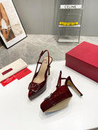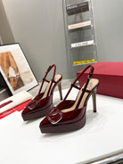 vlogo signature burgundy beige calfskin slingback platform pump 120mm