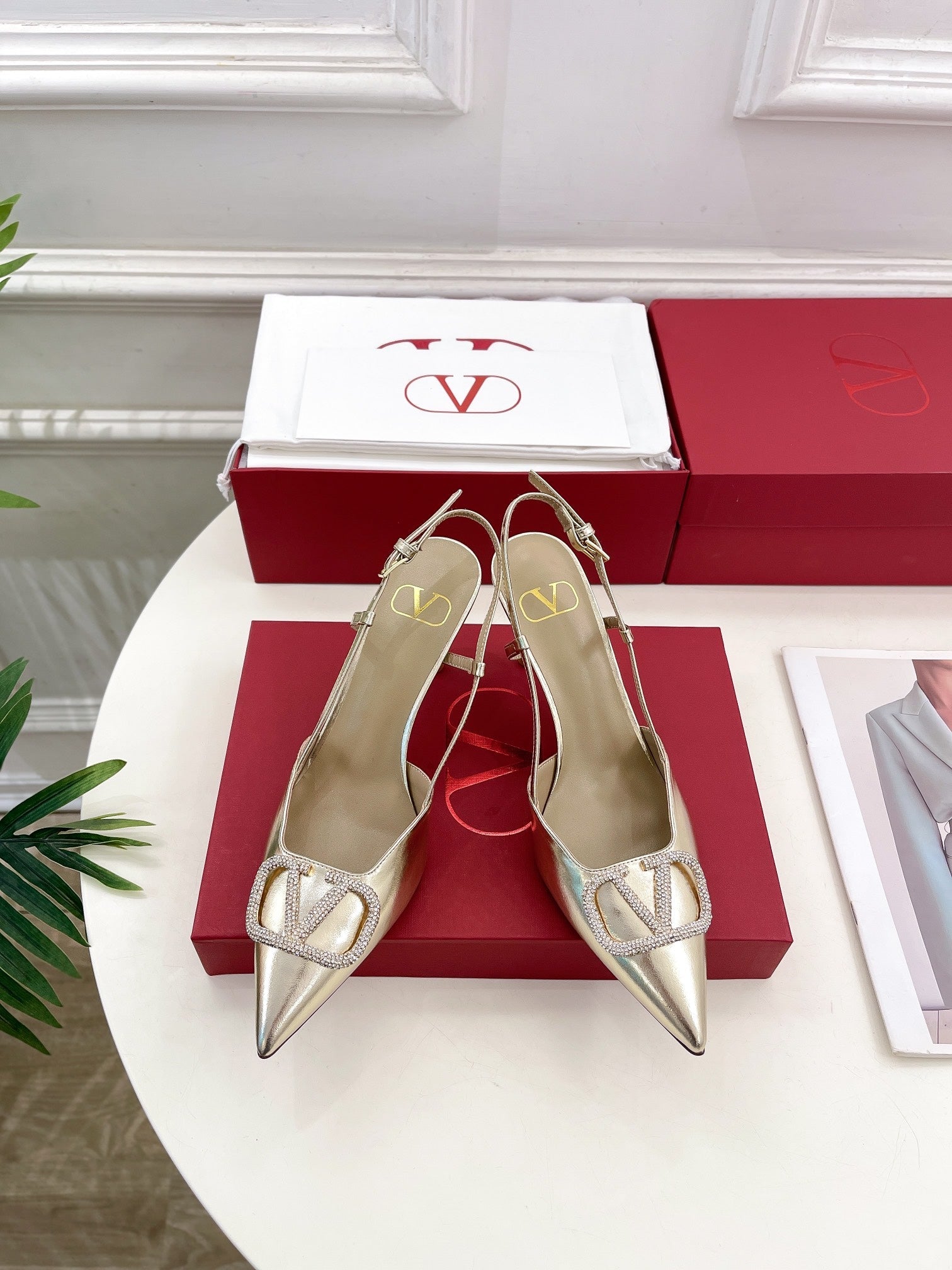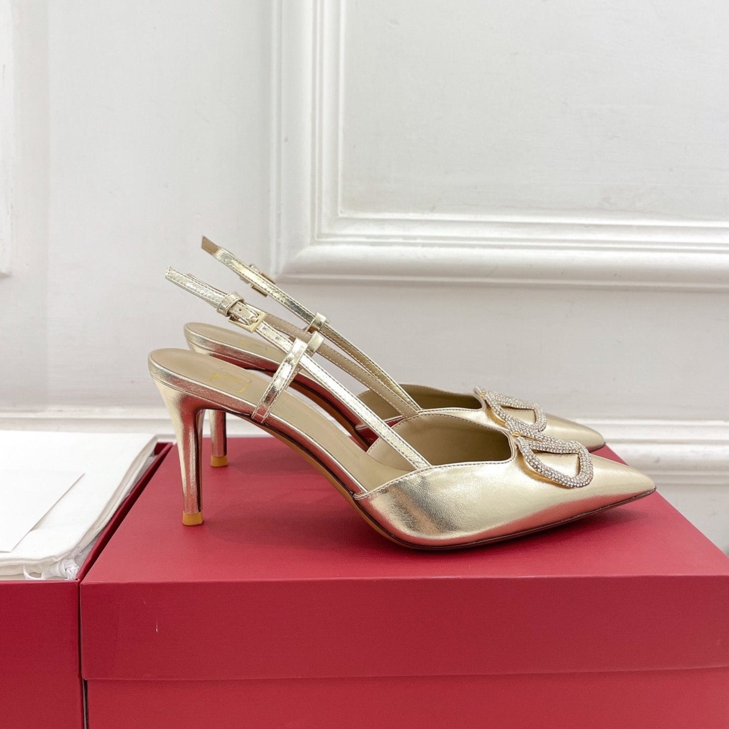 vlogo slingback pump 80 gold metalic calfskin
