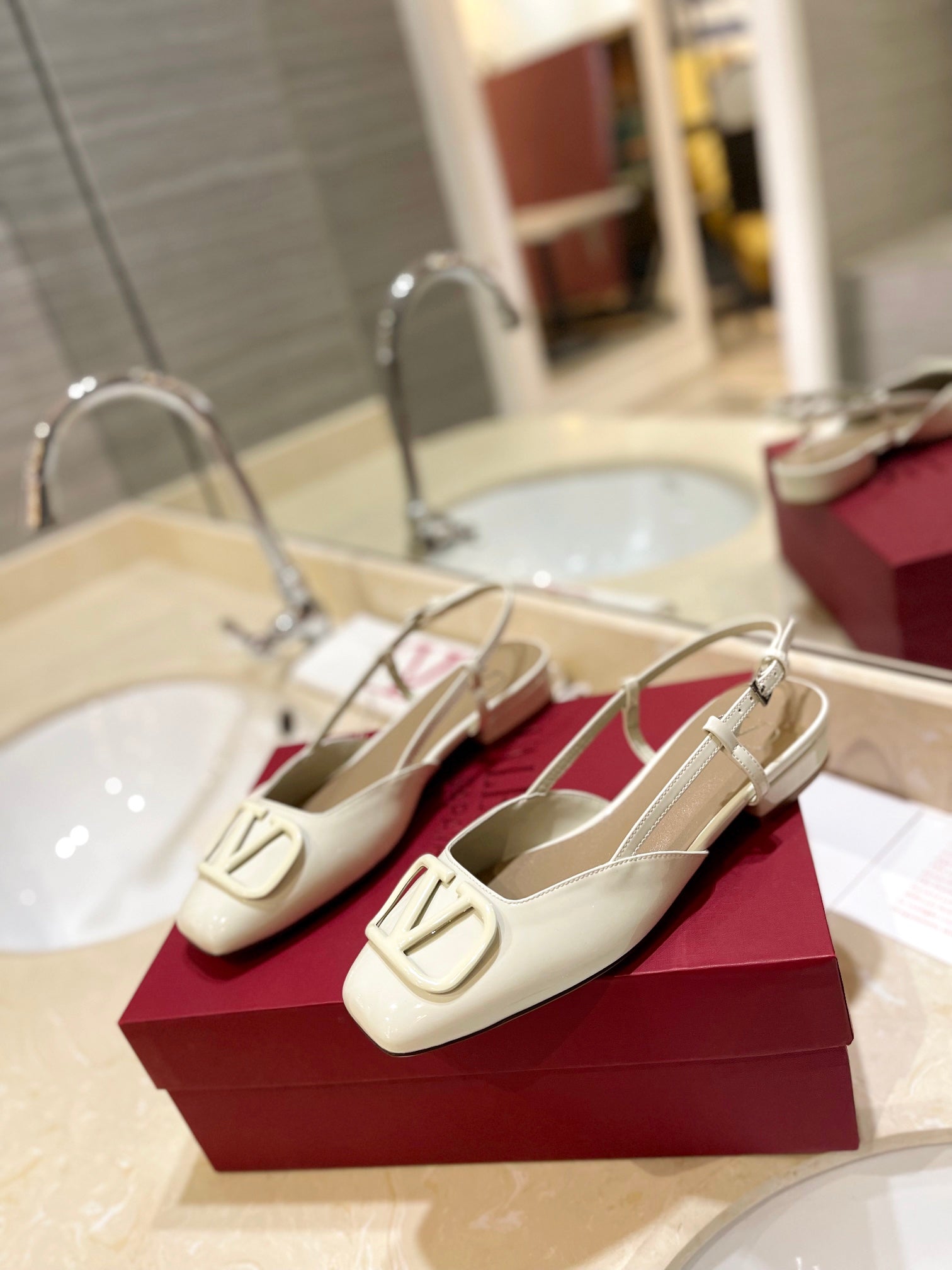 VLOGO WHITE PATENT LEATHER SLINGBACK FLATS