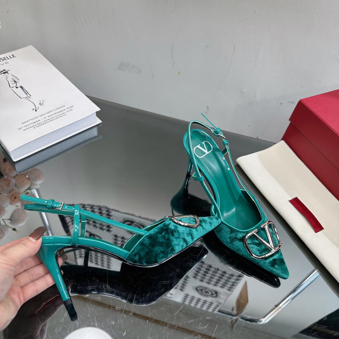 Vlogo Signature Slingback 70 Green Calfskin With Crystals