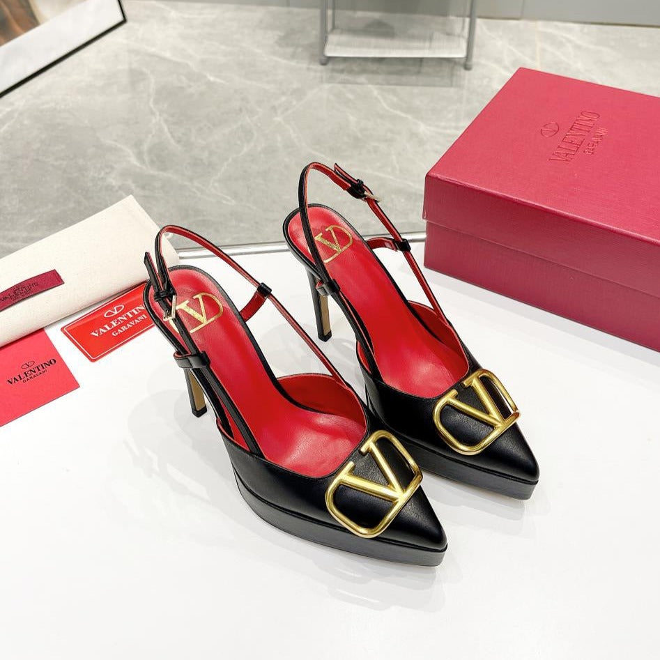 VLOGO SLINGBACK PUMP IN BLACK CALFSKIN LEATHER WITH GOLD LOGO