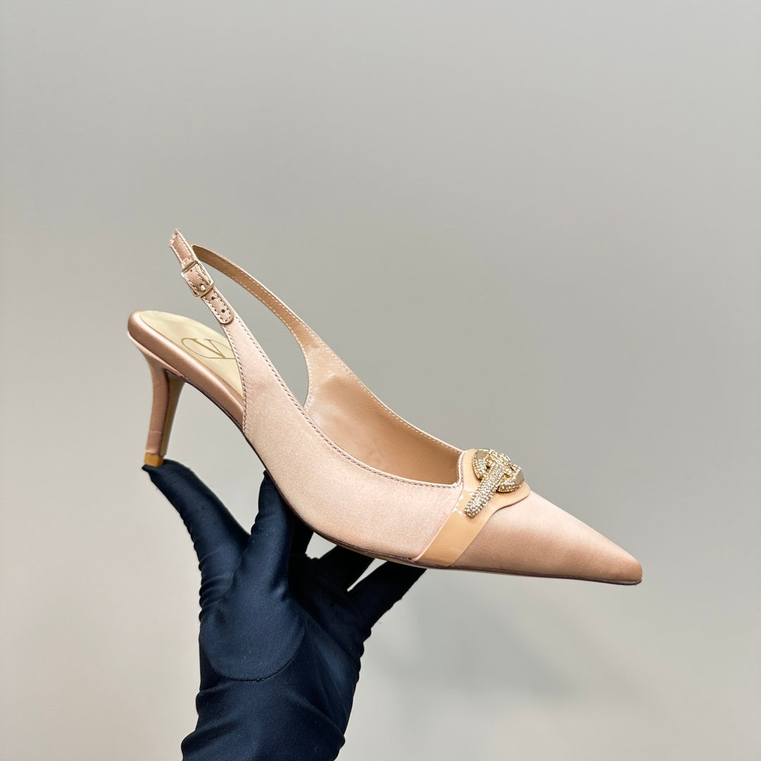 VLOGO SLINGBACK PUMP IN CREPE PINK CALFSKIN LEATHER
