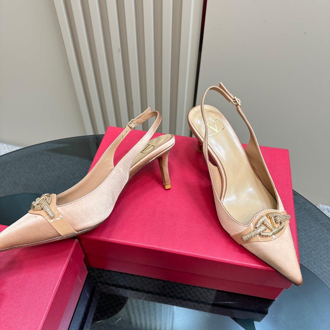VLOGO SLINGBACK PUMP IN LIGHT GOLD CALFSKIN LEATHER