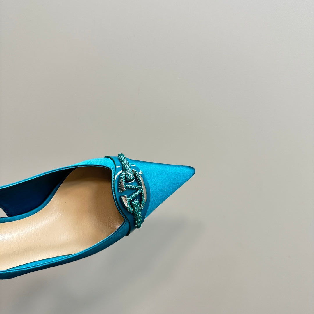 Valentino 25 Vlogo Signature Slingback Pumps Blue Pastel Silk 239503