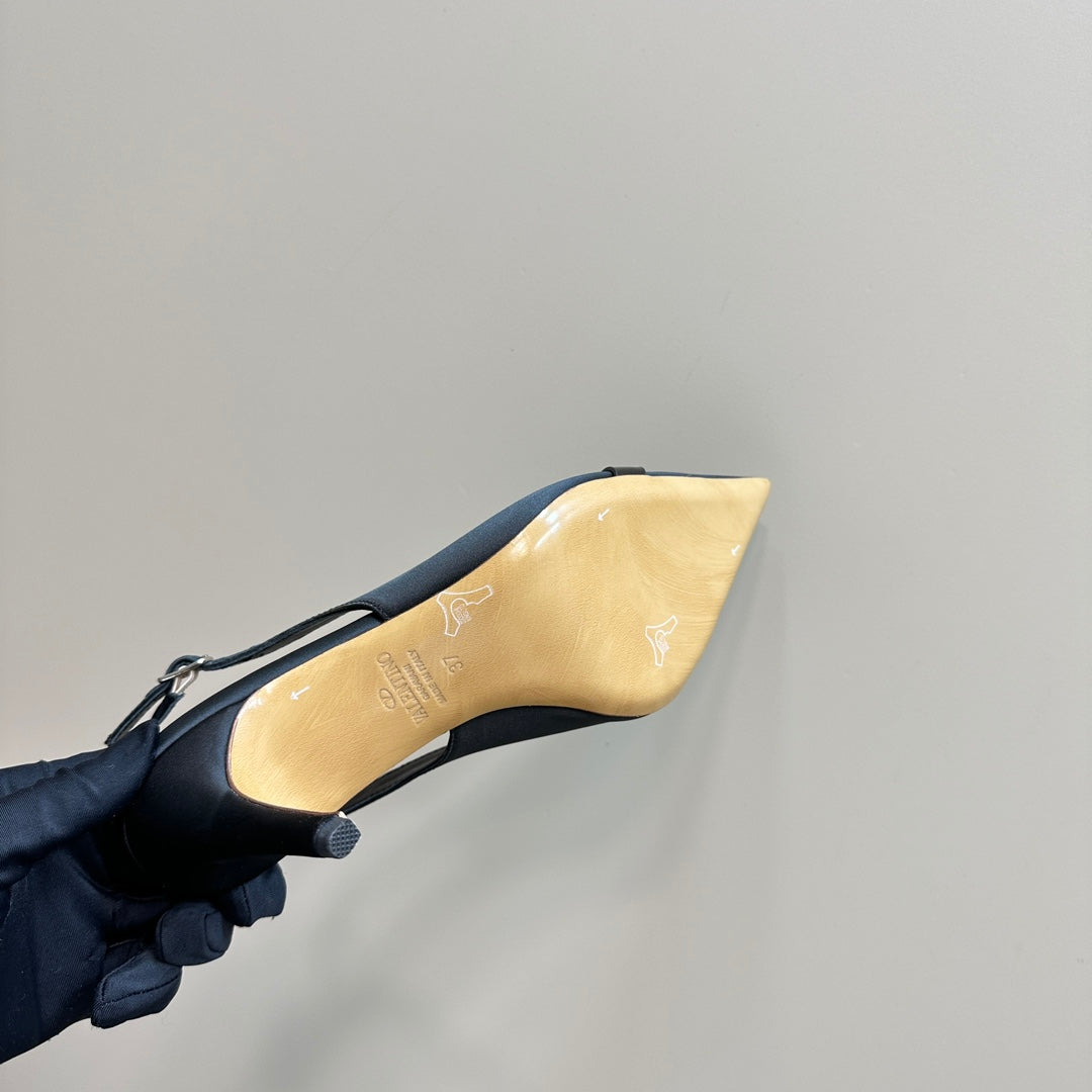 Valentino 25 Vlogo Signature Slingback Pumps Black Silk 239505