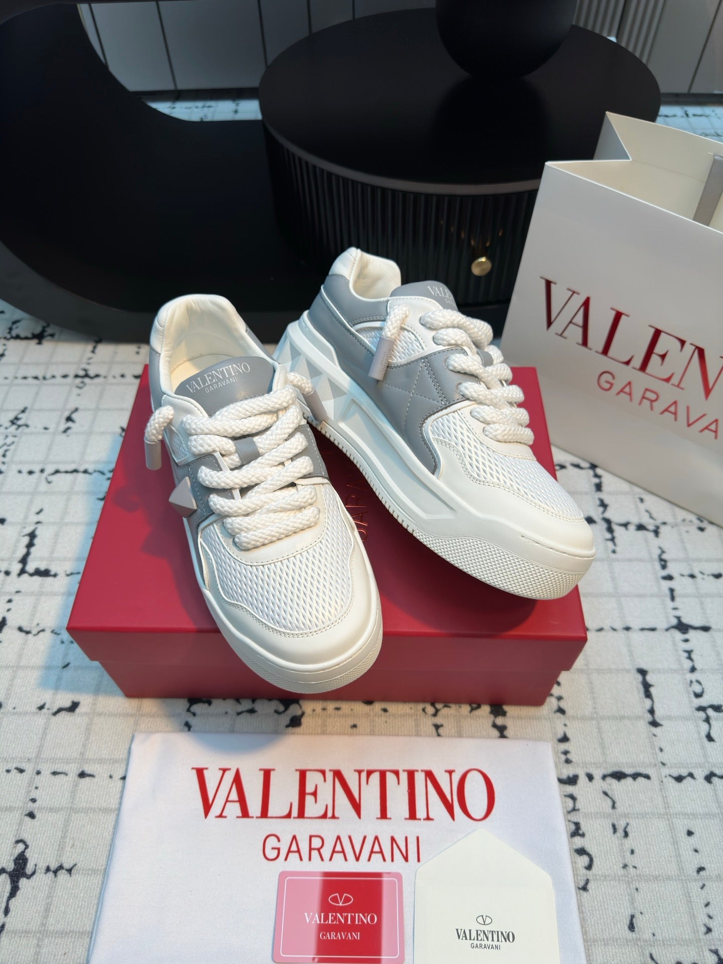 One Stud Xl Trainer In White Mix Grey Nappa Leather And Mesh Fabric 824989