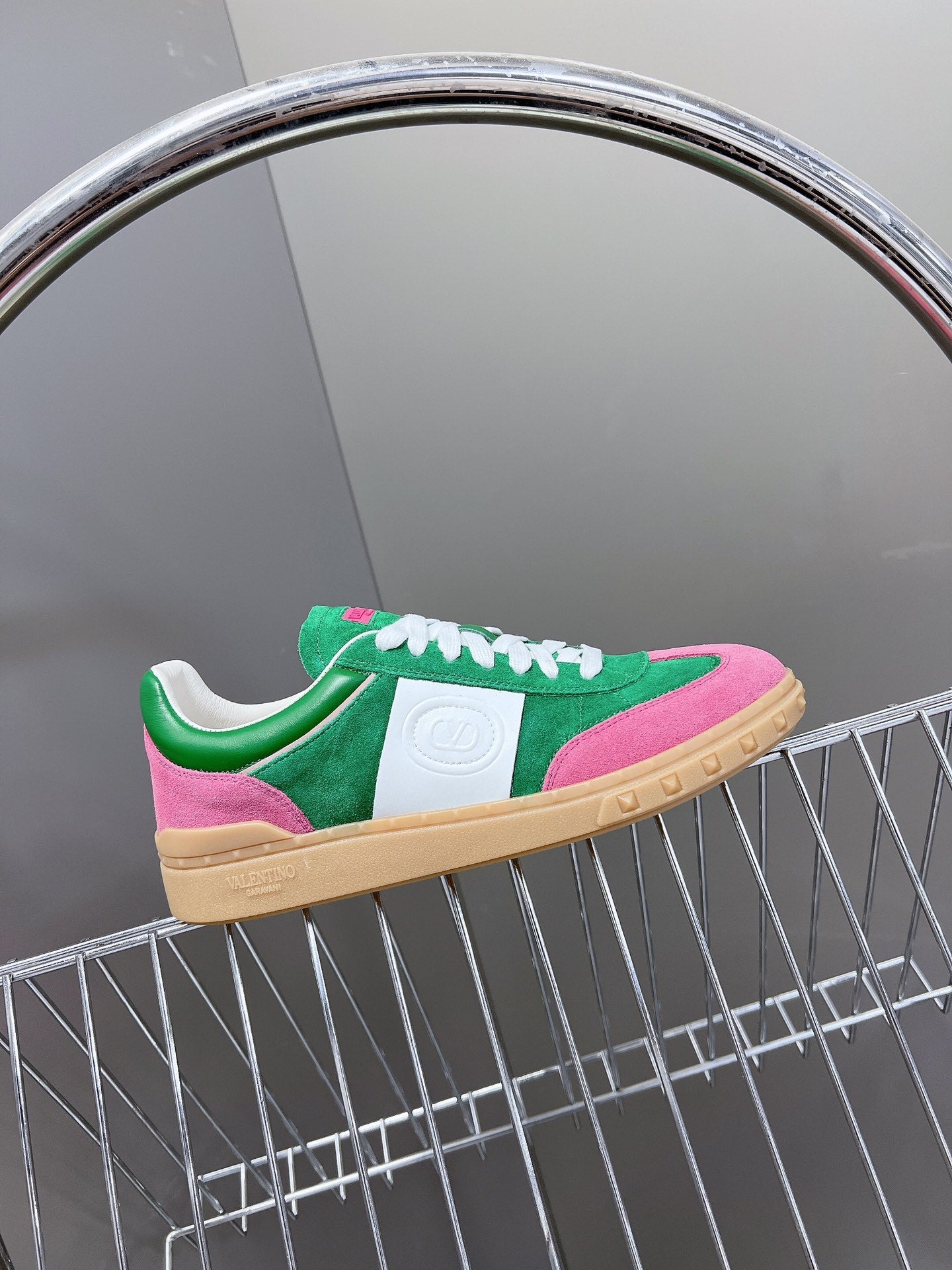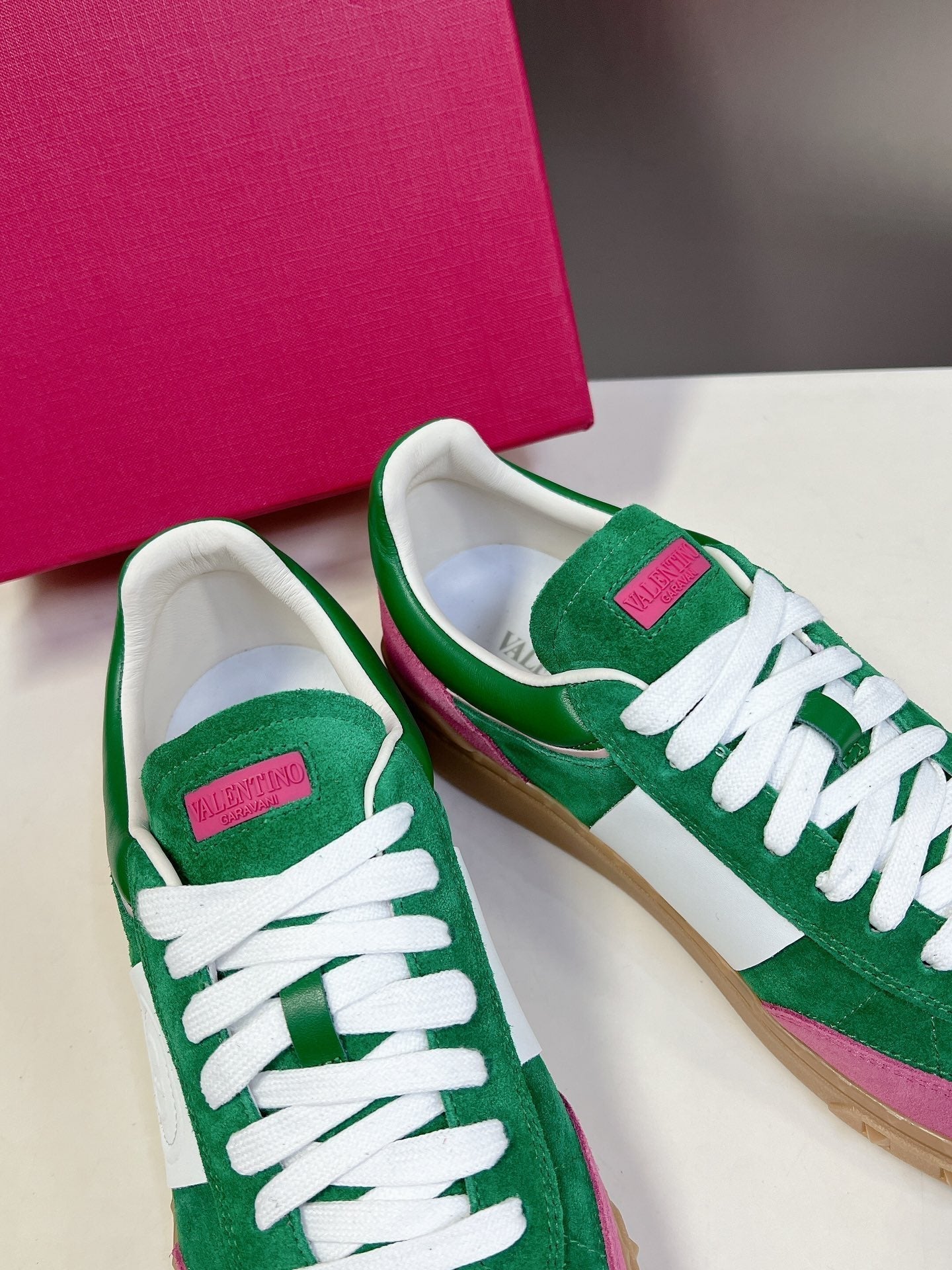 Upvillage Trainer In Dark Green Mix Lotus Pink Suede With Laminated Calfskin 989606