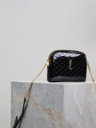 GABY ZIPPED POUCH 19 IN BLACK GLOSSY LAMBSKIN GOLD HARDWARE