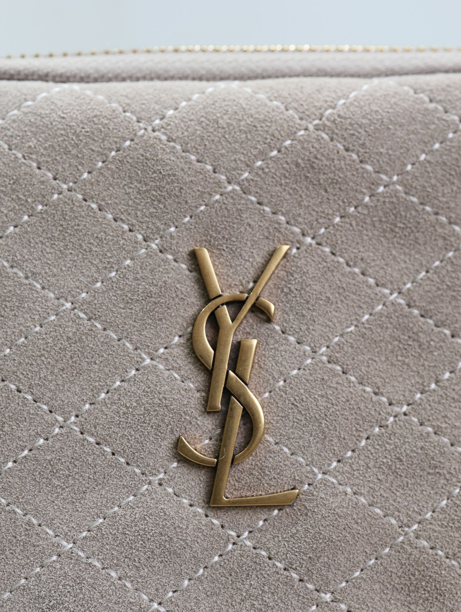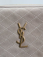 GABY ZIPPED POUCH 19 IN GRAY MATTE SUEDE GOLD HARDWARE