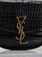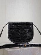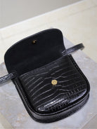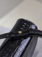 KAIA SMALL CROCODILE PATTERN BAG 18 IN BLACK GLOSSY CALFSKIN COPPER HARDWARE