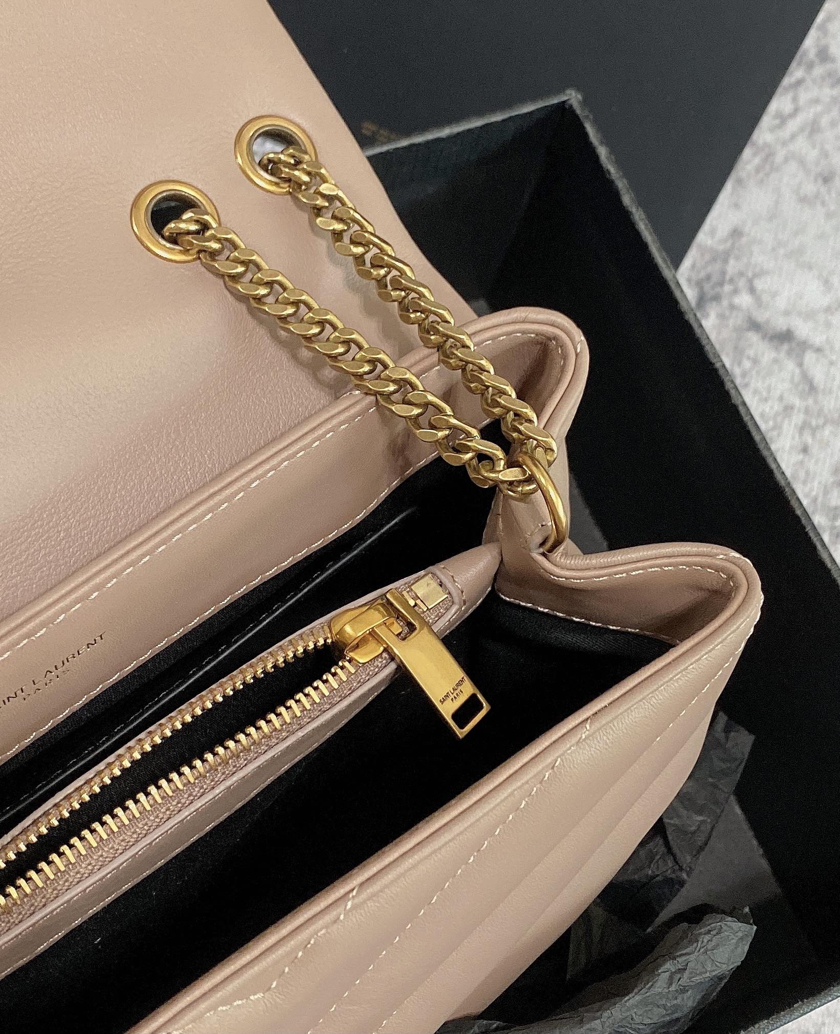 LOULOU PUFFER SMALL 25CM DARK BEIGE QUILTED LAMBSKIN