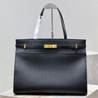 MANHATTAN SHOPPING BAG 40 IN BLACK SMOOTH LAMBSKIN GOLD BUCKLE