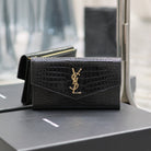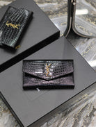 UPTOWN WALLET 21 IN BLACK CROCODILE PATTERN CALFSKIN GOLD LOGO