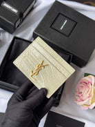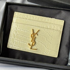 YSL Card Holder 10cm Wallet Cream Gold Crocodile Leather 240565