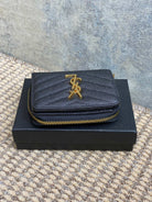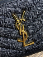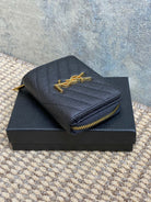 YSL Cassandre Matelassé Compact Zip-Around Wallet Black Caviar Cowhide GHW