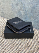 YSL Cassandre Matelassé Compact Zip-Around Wallet Black Caviar Cowhide Sliver HW