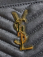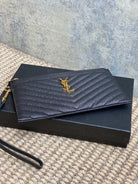 YSL Gold Hardware Logo Zipper Clutch 23cm Black Caviar Cowhide