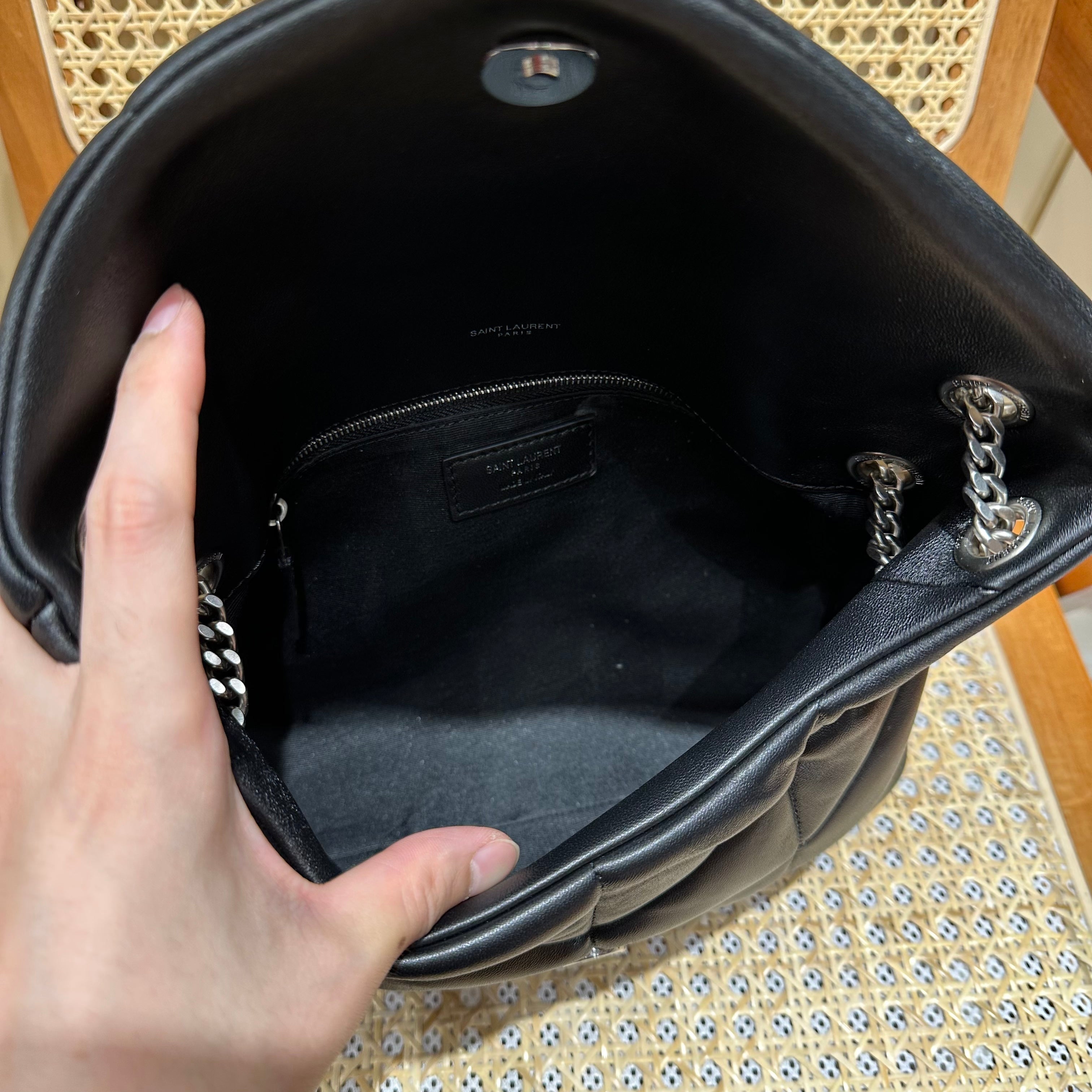 YSL Loulou Puffer Quilted Bag Black Silver Lambskin 338827