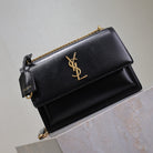 YSL Medium Sunset Shoulder Bag 22cm Black Cowhide GHW