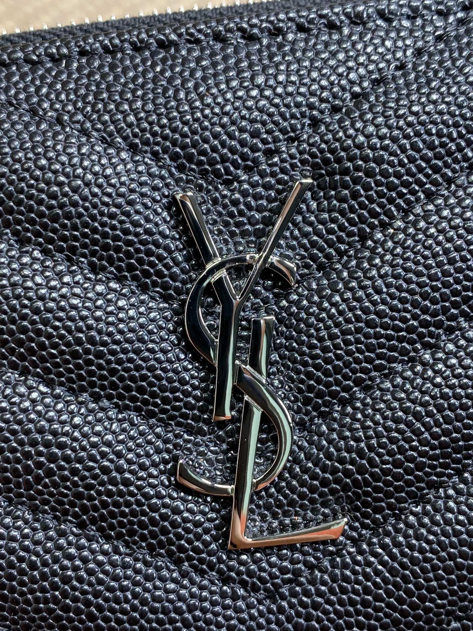 YSL Monogram Wallet Wallet 13cm Black Caviar Cowhide Sliver HW