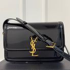 YSL Solferino Small Satchel Bag Black Gold Patent Leather 339430