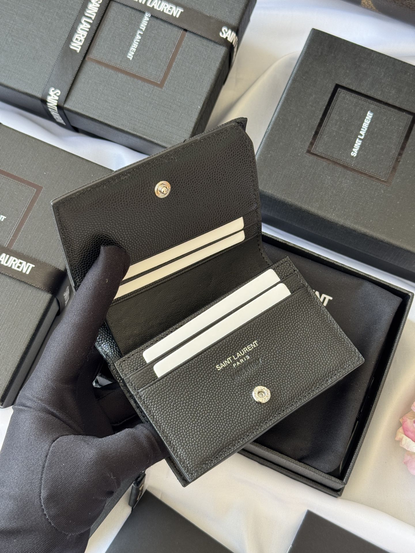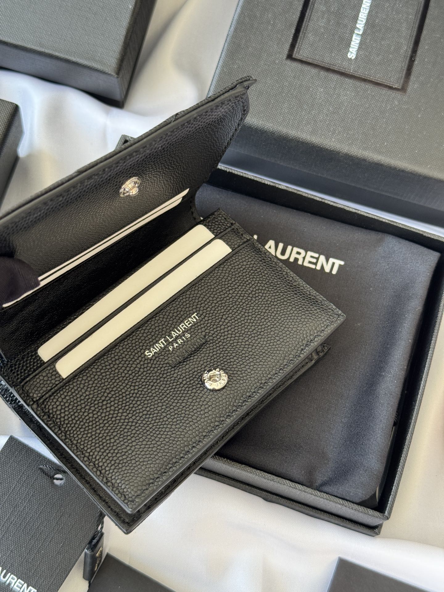 YSL Wallet Black Silver Cowhide 240574