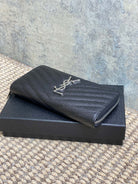 YSL Zippy Long Wallet Black Caviar Cowhide Sliver HW