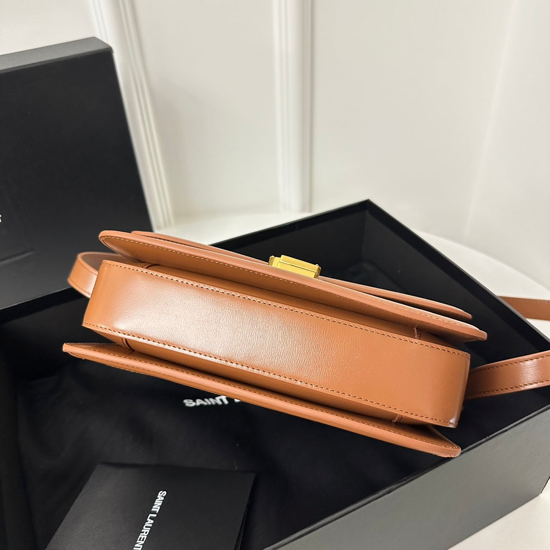 YSL Solferino Small Satchel Bag Brown Gold Calfskin 339437