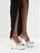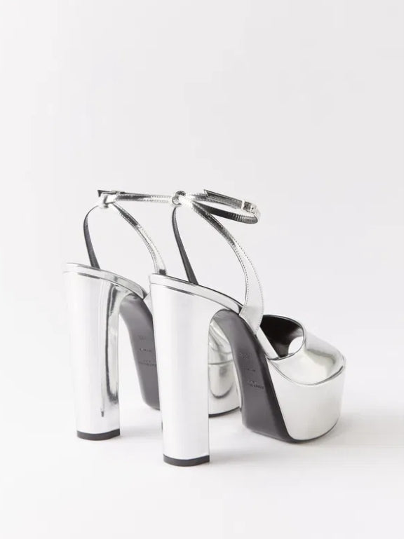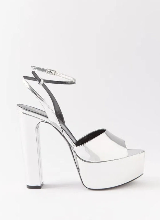 SL JODIE 135 PLATFORM SANDALS SILVER CALFSKIN
