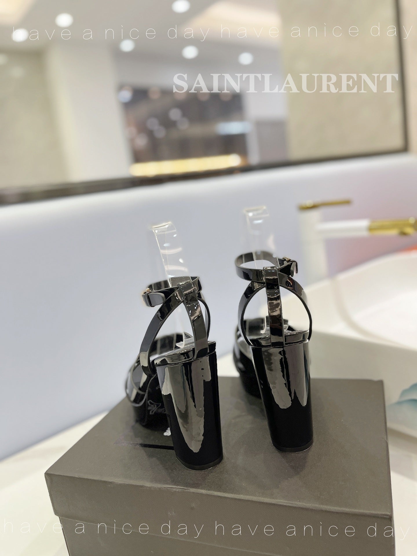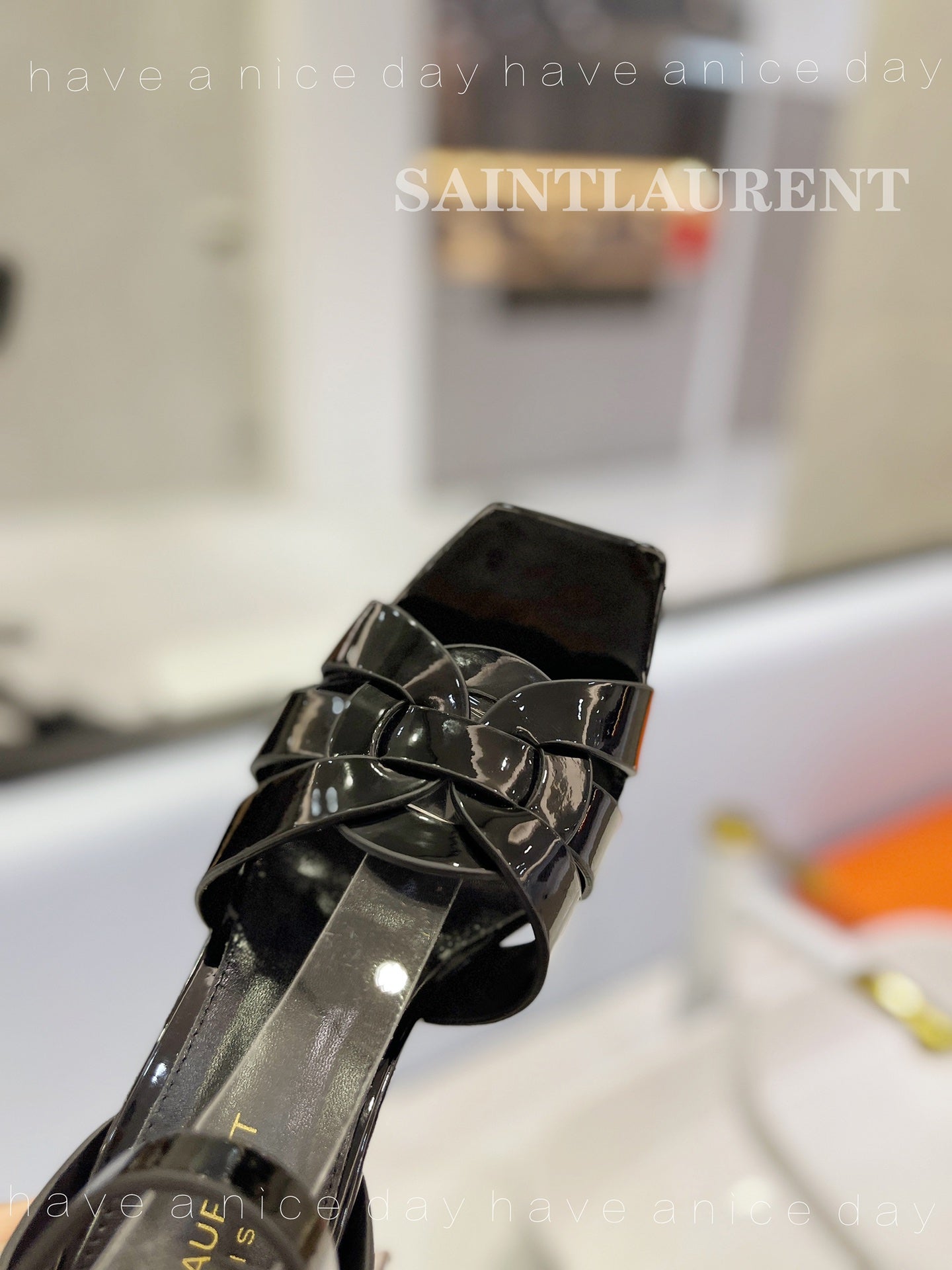 SL TRIBUTE FLATFORM SANDALS GLOSSY BLACK CALFSKIN