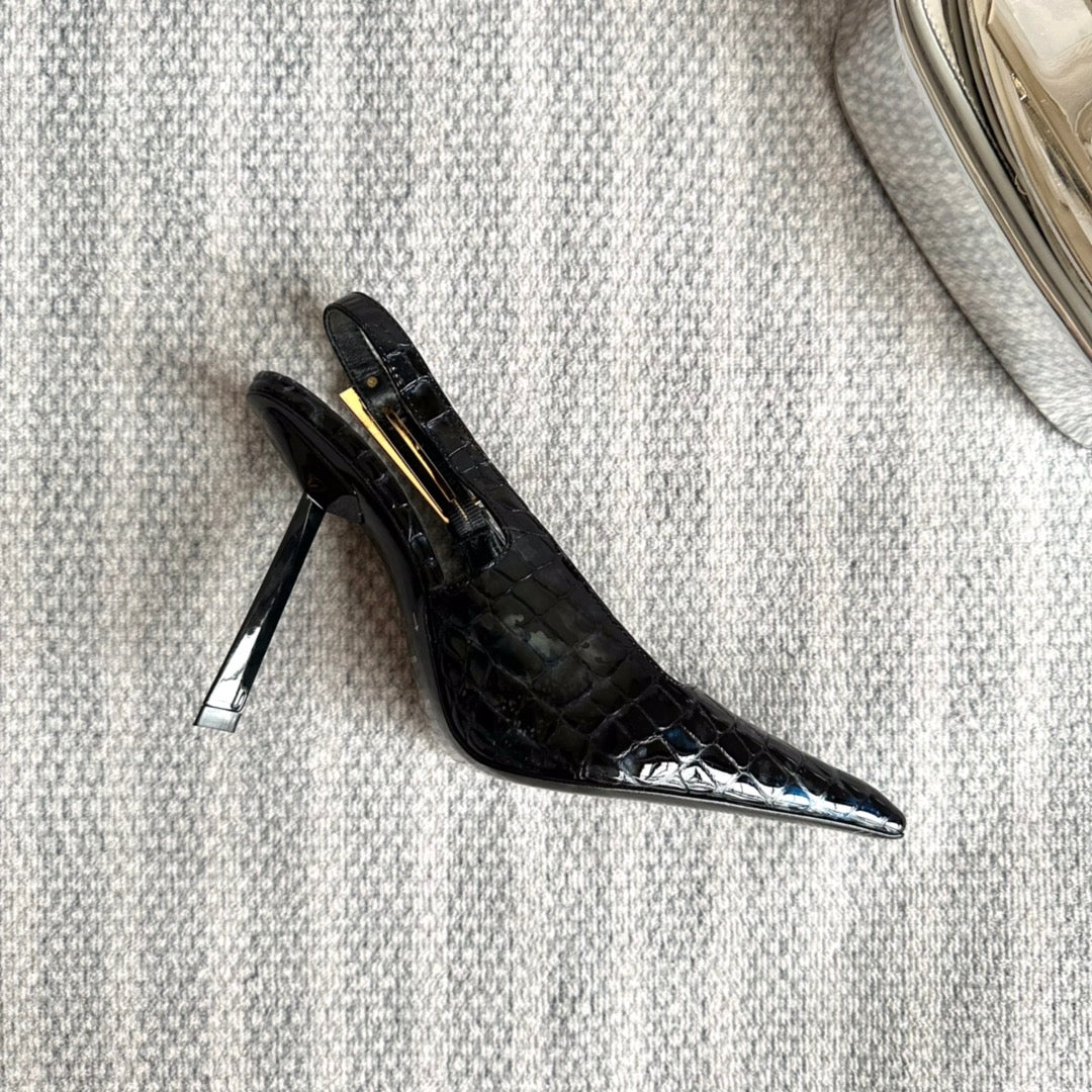 LEE SLINGBACK PUMPS 105 IN BLACK CROCODILE-EMBOSSED LEATHER